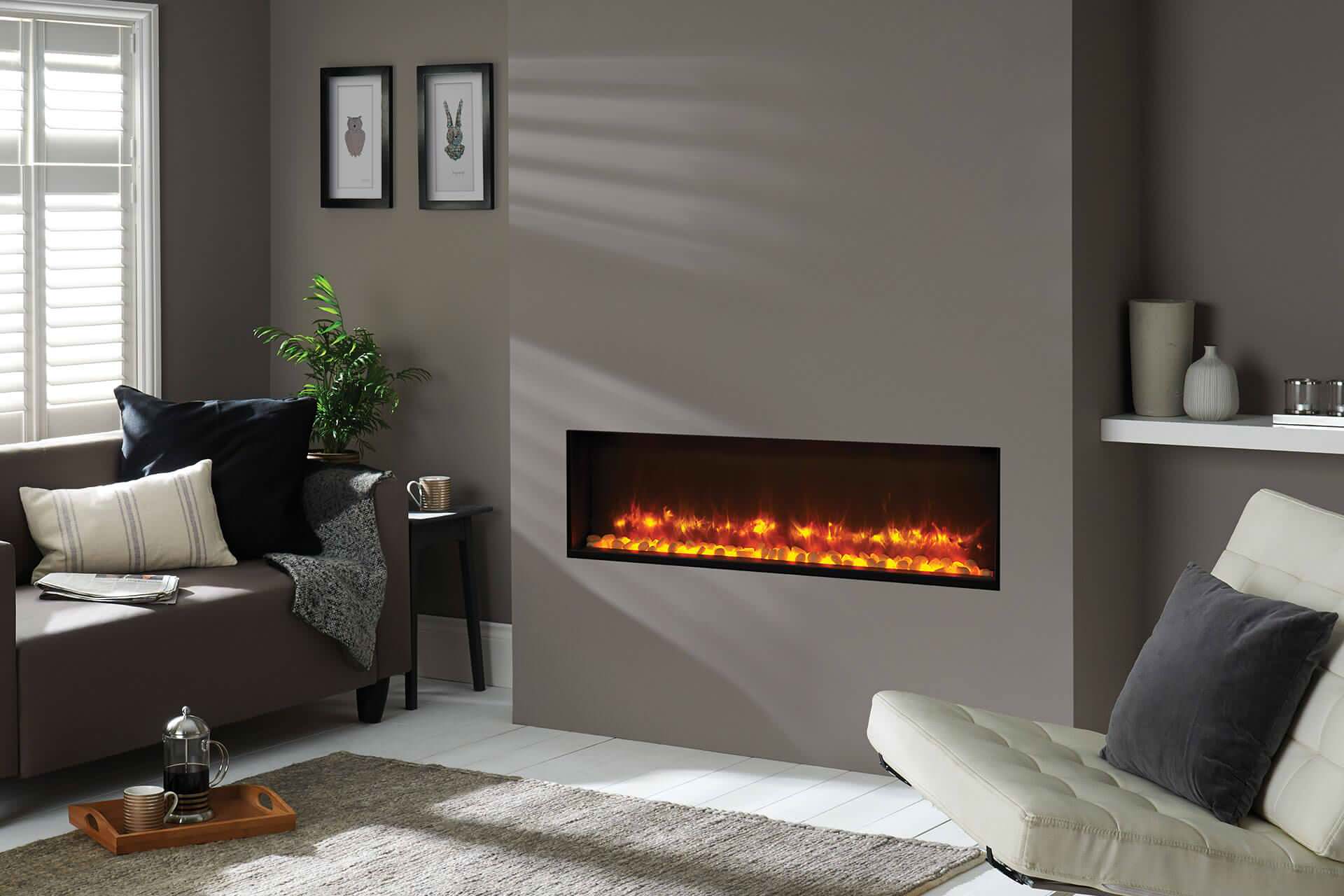 Stay up to date with the latest offers. Burnished walnut, white or warm oak. Easy to assemble and looks beautiful. 5115 btu provides supplemental heat up to 92.9 m² (1,000 ft²) Here at fireplace and design we offer a huge diverse range of quality solid fuel, gas and electric fires, as well as fireplace surrounds and accessories, at prices to suit every customer.
